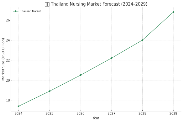 Thailand stands at the forefront of Southeast Asia’s healthcare transformation, with a robust focus on nursing excellence, maternal health programs, and nursing education reform. As of 2024, Thailand's nursing services market was estimated at USD 17.4 billion, expected to grow to USD 26.8 billion by 2029, reflecting a CAGR of 9.0%.